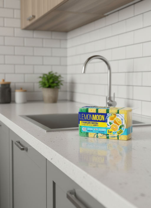 Цена за 2 шт. Губки для посуды ЛИМОН Крупнопористые арома (5шт) LEMON MOON L114