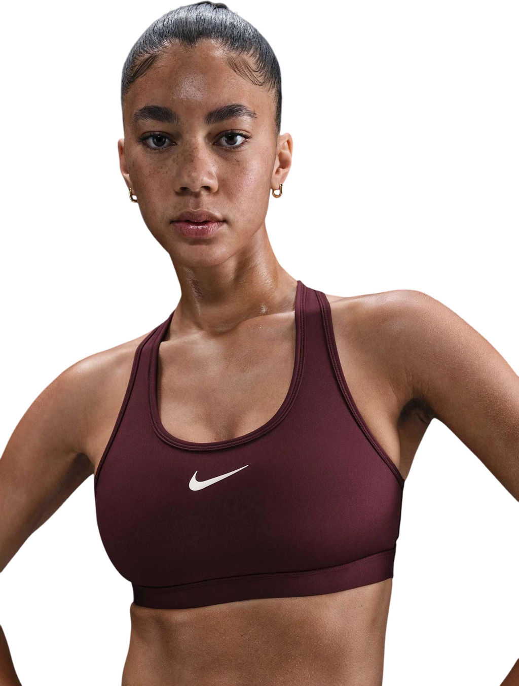 Вы в движении. Вшитые чашечки этого топа Swoosh остаются на месте, поэтому вы можете усердно работать, не беспокоясь об их смещении или складывании. Отлично подходит для тренировок и занятий танцами, средняя поддержка обеспечивает плотную фиксацию, которая помогает удерживать все на месте. Кроме того, влагоотводящий, адаптивный материал быстро восстанавливает форму, поэтому вы можете оставаться в комфорте на протяжении всей тренировки.