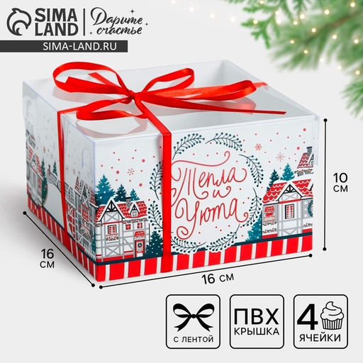Размер одной ячейки, без учёта выемки под пальцы, 6,5 см. Вид упаковки: Для капкейков. Форма: Квадратная. Плотность, г/м: 280. Длина, см: 16. Ширина, см: 16. Высота, см: 10. Вместимость, шт.: 4. Допустимый вес вложения, г: 600. Тематика: Дом. Тематика: Надписи, цифры, буквы. Символ года: Нет. Тематика праздника: Новый год. Вид ручки: Без ручки. Вид: Кондитерские коробки. Вид еды: Для десертов. Размер: Малый (11-17 см). Бесплатная доставка: Да. Наша разработка: Да.