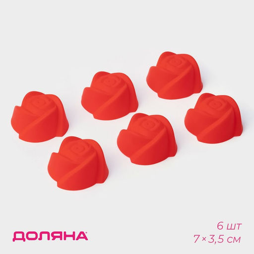 • Формы для выпечки кексов Доляна «Розочки», силикон, 7×3.5 см, набор 6 шт., МИКС
