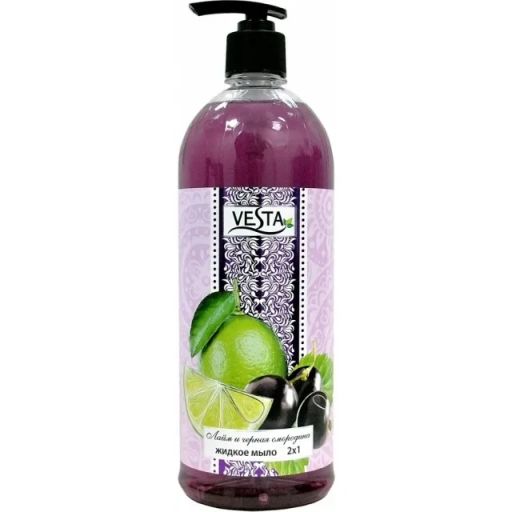 VESTA жидк.мыло 1л с дозатором "2х1 Очищение и Уход" Лайм и черная смородина