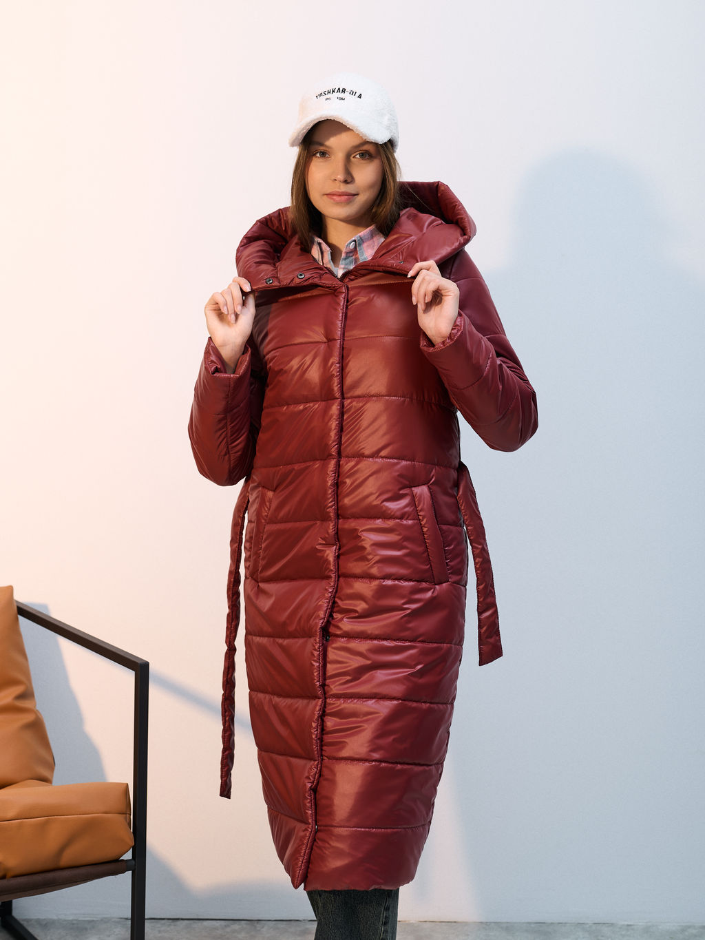 Демисезонное пальто с поясом из мягкой ткани с водоотталкивающей пропиткой. Удлинённая модель с капюшоном и утяжкой обеспечивает комфорт и защиту от ветра и влаги. Застёжка на молнии и кнопках надёжно сохраняет тепло. Карманы на молнии удобны для хранения мелочей. Пояс подчёркивает талию и позволяет регулировать посадку.­