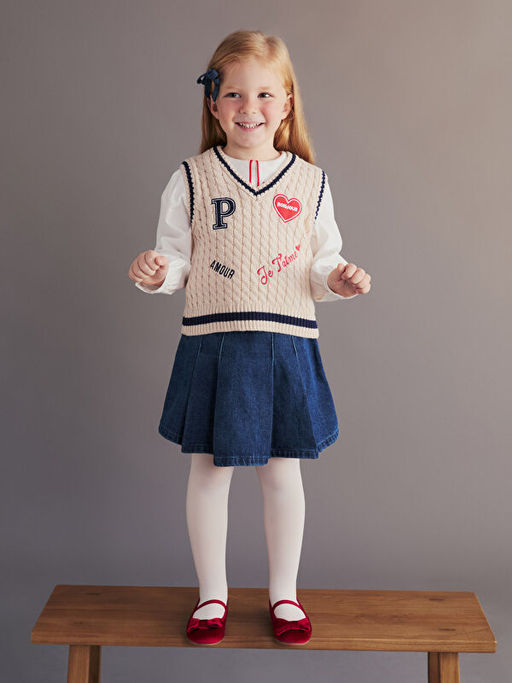 V Yaka Desenli K?z ?ocuk Triko S?veter