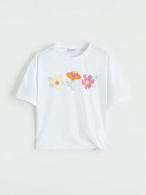 • Bisiklet Yaka Bask?l? K?z ?ocuk Ti??rt