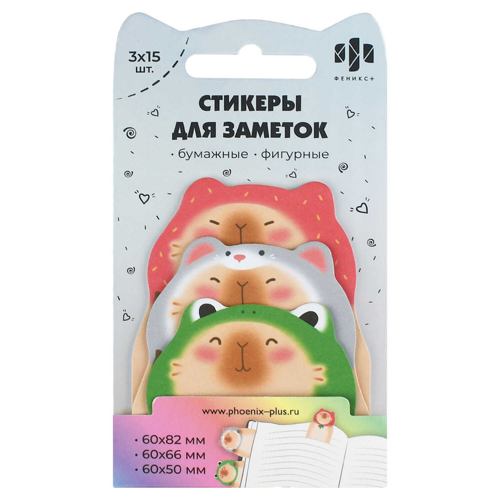 Стикеры для заметок бумажные, 60х82; 60х63; 60х48, 45 шт., арт. 71618 / 25 КАПИБАРЫ (материал: диза
