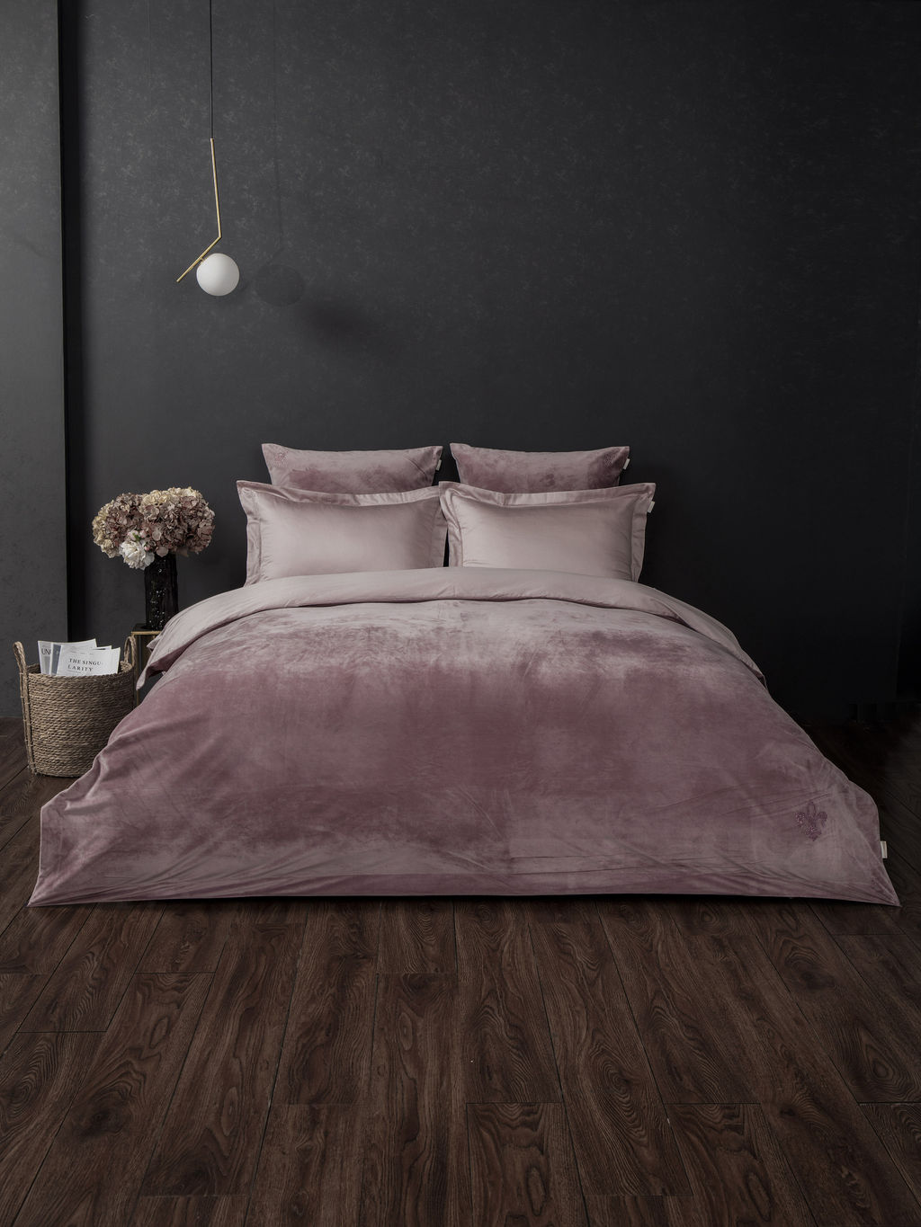 Наволочки 70х70 выполнены из комбинации нежного велюра и египетского хлопка, украшены элегантным логотипом из страз.