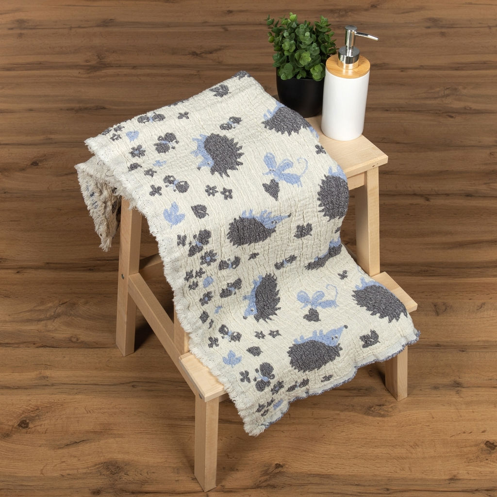 Артикул: 20С211-ШР/у. Тип ткани: Полулен Состав: 59% Хлопок, 41% Лен Вид оформления: Жаккардовая Рисунок: 726 Ёжики Цвет: 23 Применение: Ванная, Детские Производитель: Беларусь Характер рисунка: Детский, Животный мир Оттенок цвета: Оттенки кремового, бежевого , Оттенки серого , Оттенки синего Упаковка: пакет пвх Тип изделия: Полотенце Размер полотенца, см: 60*130 Плотность, г/м?: 260 Тип полотенца: Банное