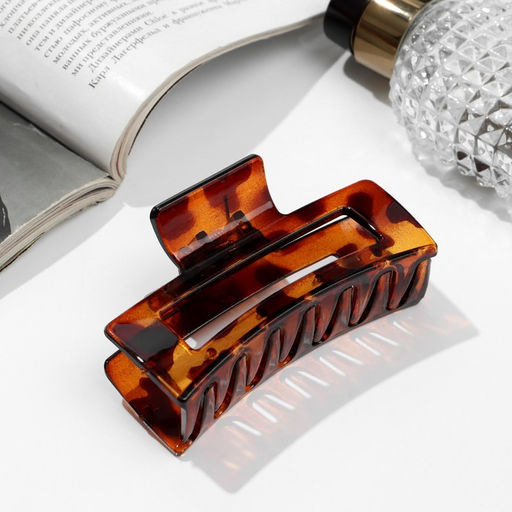 • Цена за 12 шт. Крабик для волос «Леопардовый», прямой, 8.5 см, коричневый