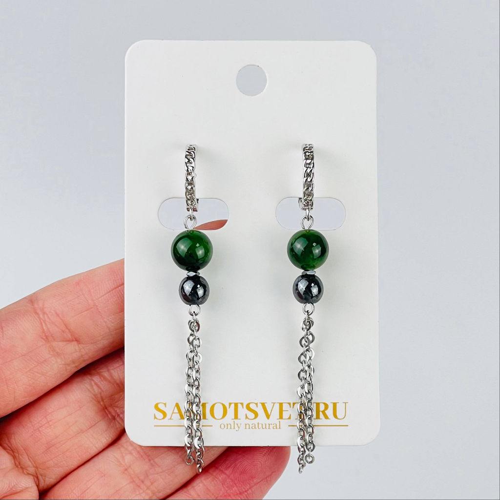 • Серьги длинные из Нефрита и Гематита 65 см