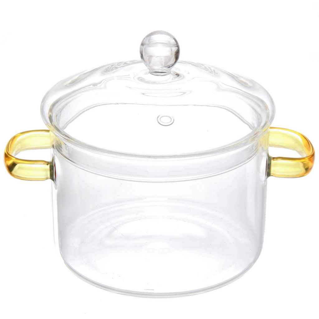 • Кастрюля из боросиликатного стекла 1,5л "Хай-Тек" со стеклянными жёлтыми ручками