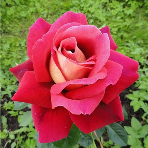 Чайно-гибридная. Кусты розы формируются из мощных прямостоячих стеблей высотой до 100-120см. Диаметр достигает 0,9м. Пышность кроны куста средняя, листовые пластины в ней темно-зеленые, глянцевые, крупного размера. На каждом стебле располагается по 1 цветку со слабым, нежным ароматом. Шипы расположены преимущественно на старых побегах, расположены редко, на молодых практически не встречаются. Бутоны розы окрашены в медно-серый цвет с фиолетовыми мазками и полосами по поверхности сомкнутых лепестков. Их форма овальная, заостренная, изящная. Раскрывшийся венчик чашевидный, с высоким центром, диаметром 10-12см. Лепестки яркие, темно-бордово-фиолетовые, с обратной стороной лепестков золотисто-кремового цвета. Такая сложная и переменчивая окраска именуется реверсом.