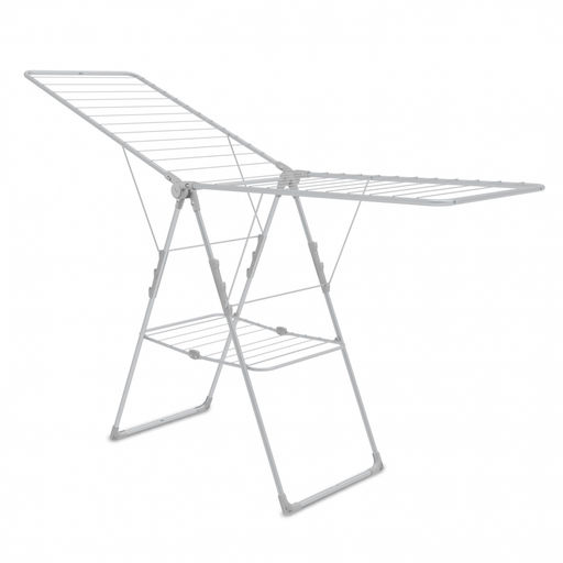 Складная напольная сушилка для белья с полкой. Компактная в сложенном виде и вместительная в развернутом. Подходит для использования в небольших помещениях.
