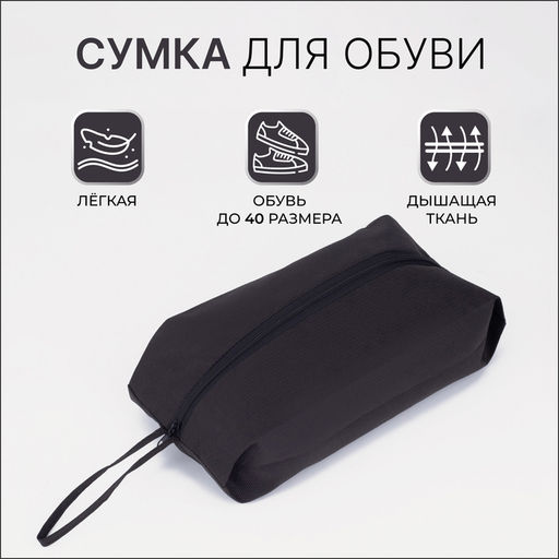 • Сумка для обуви на молнии, размер 37×16×10 см, чёрная