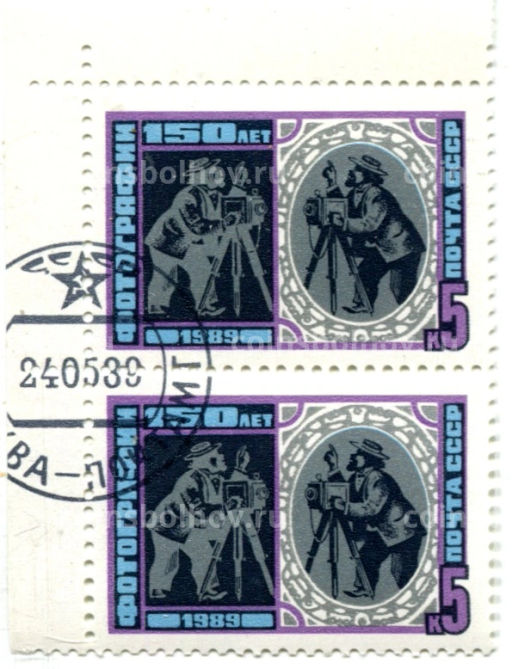 Марка 150 лет фотографии 1989 год (блок из 2 марок)