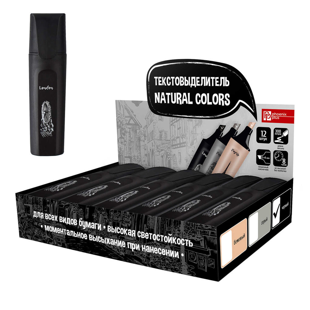 Текстовыделитель арт. 59084 / 12 ЛОНДОН (БОКС, 12 шт., цвет: чёрный, 105х27х17 мм,
