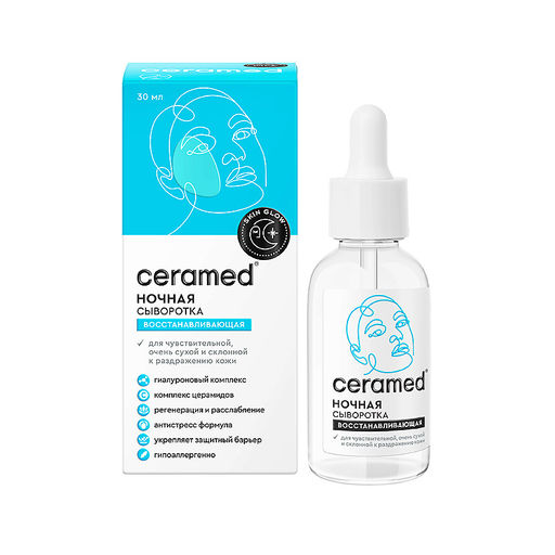• CERAMED Сыворотка восст.Ночная Skin glow 30мл