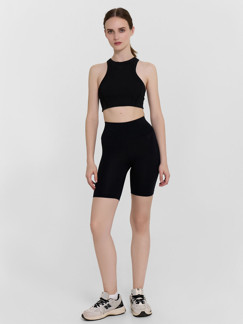 Женские велосипедки удобный и универсальный элемент гардероба. Облегающий силуэт подчеркивает фигуру, а длина выше колен делает модель комфортной для активного движения. Широкий пояс с эластичной тесьмой внутри обеспечивает надежную посадку, не сдавливая и не ограничивая движения. Трикотажная кулирка отличается мягкостью, воздухопроницаемостью и эластичностью, что делает велосипедки приятными к телу и удобными для повседневной носки. Нижние срезы обработаны швом вподгибку, что придает изделию аккуратный вид и долговечность. Эти велосипедки отлично подойдут для спорта, прогулок или расслабленного образа на каждый день.­