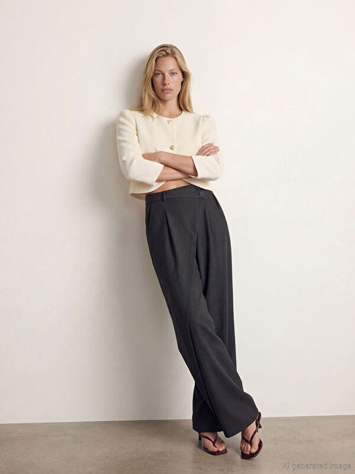 • Standart Fit Kad?n Pileli Kuma? Pantolon