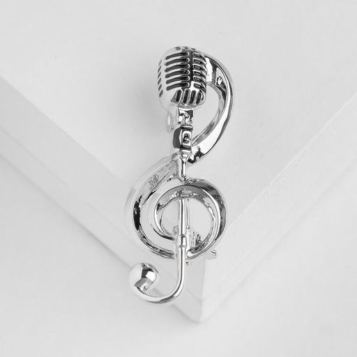 • Брошь «Ретро микрофон» с нотой, цвет серебро