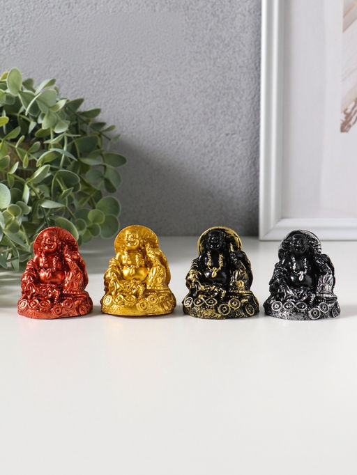 Набор фигурок 4 шт. «Хотей с зонтом», полистоун, 4.5×4.8×5.6 см