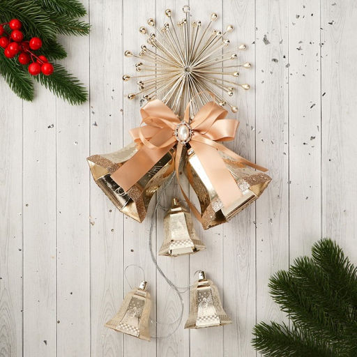 • Украшение новогоднее «Зимнее волшебство. Колокольчики» 15×47 см, с бантом, золотистое
