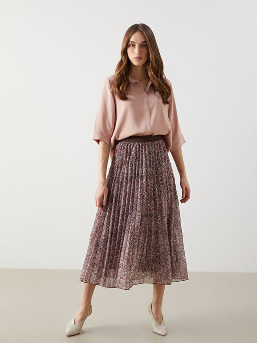 • Beli Lastikli Desenli Kad?n Pileli Etek
