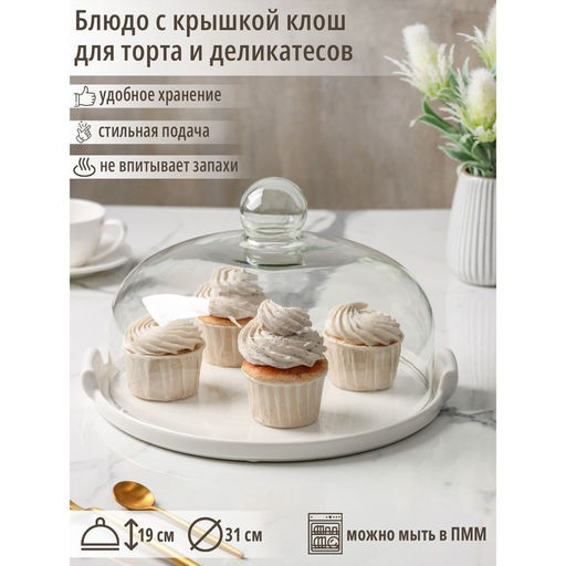 Подставка для торта со стеклянной крышкой и керамическим блюдом с ручками. Крышка изготовлена из натриевого-известкового стекла с низким содержанием металлов, стекло абсолютно прозрачное, бесцветное и обладает повышенным блеском. Крышка ударопрочная и термостойкая, устойчива к вредному воздействию воды и не мутнеет после длительного использования.Подставка изготовлена из усиленной керамики, что придает изделию ударопрочность и износостойкость. Изделие имеет высокие бортики, что позволяет плотно фиксировать крышку и даже в случае наклона, она не соскользнёт и не испортит красивую выкладку.Такую посуду можно использовать в ресторанной выкладке десертов и деликатесов, они не впитают посторонние запахи. Помимо тортов, пирожных и различных деликатесов блюдо подойдет для подачи блинов, сыров и фруктов, а так же для хранения хлебобулочных изделий.Ваши кулинарные шедевры будут смотреться еще аппетитнее на такой подставке!Можно мыть в посудомоечной машине.Размеры блюда:Общие габариты 31?28?19 смКрышка (купол) 26?26?18 смБлюдо (подставка) 31?28?3,5 см Форма: Круглая. Диаметр, см: 25. В наборе, шт.: 1. Тематика: Однотонная. Рисунок: Нет. Можно мыть в посудомоечной машине: Да. Можно использовать в СВЧ-печи: Да. Текстура: Гладкая. Особенности: Без особенностей. Матовая поверхность: Нет. Размеры товара: 28/19/31.