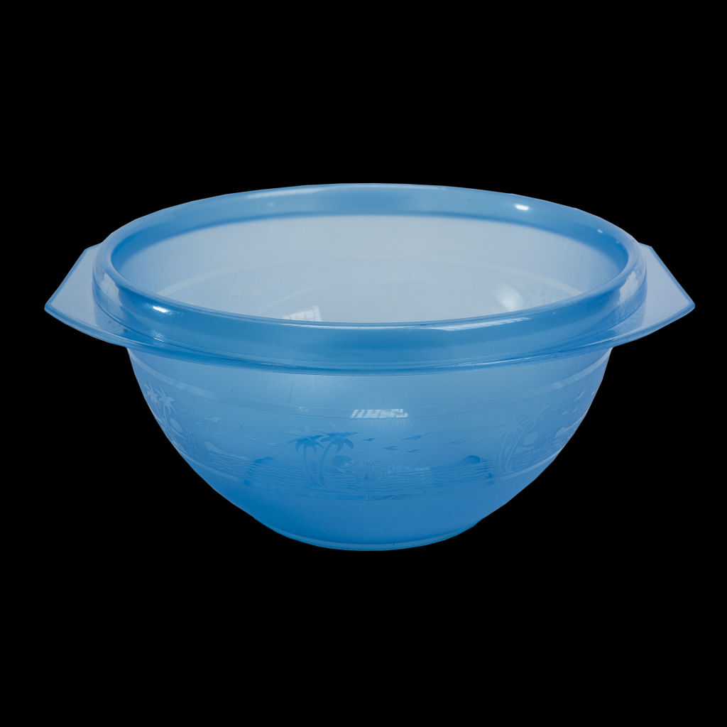 Чаша изготовлена из качественного цветного пластика. Чашу можно использовать для еды, сервировки стола или хранения фруктов. Объем 4,5 л.­