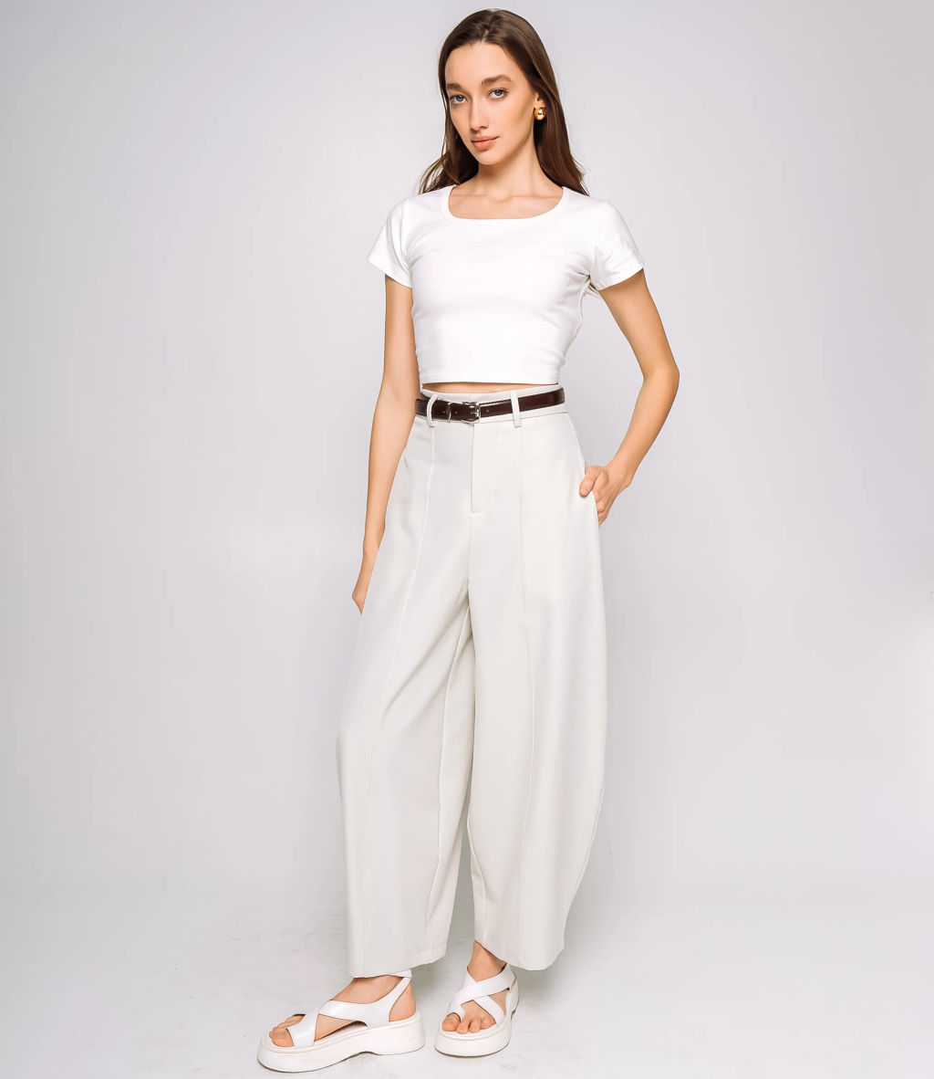 Брюки это важная часть гардероба, которая подчеркивает утонченность и профессионализм каждой женщины. Высокая талия с шлевками и скрытой застёжкой, свободный укороченный крой до щиколотки с мягким драпированием по бедрам, врезные боковые карманы, продольная декоративная строчка по центру каждой штанины, широкий подол с двойной строчкой, минималистичный дизайн, средняя плотность ткани с хорошей драпировкой и усиленные швы для прочности. Для пошива использована ткань: 75% хлопок, 25% полиэстер. Материал средней плотности хорошо держит форму, обладает приятной на ощупь структурой и обеспечивает комфорт при носке. Даже после многократных стирок изделие не утратит первоначальной аккуратности и цвета, что важно для поддержания высокого уровня продаж в рознице. Обратите внимание на насыщенные оттенки: цвет соответствует фотографии на сайте. Модель имеет два боковых кармана и декоративные швы, подчеркивающие структуру изделия. Для уверенности в размере на странице представлена таблица, с помощью которой можно самостоятельно снять мерки и подобрать нужный размер. Мы предлагаем выгодные оптовые условия, гибкую ценовую политику и стабильные поставки для ваших магазинов. Цена установлена адекватная, что позволит вам формировать привлекательную наценку и обеспечивать высокую оборотность. Подарите своим клиенткам изделие, которое сочетает в себе стиль, комфорт и надежное качество. -- Характеристики -- Цвет: светло-бежевый Пол: Женский Страна производитель: Китай Сезон: Демисезон Материал: Хлопок, Полиэстер