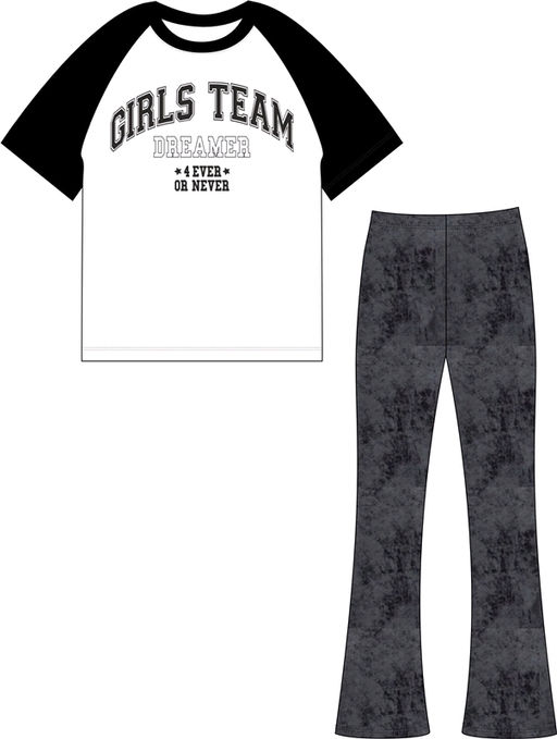 футболка+брюки,хлопок 100%, хлопок 92% + лайкра 8%, / хлопок 100%, хлопок 92% + лайкра 8%,- / белый+черный+варенка темно-серый / Команда / - / - / -,Костюм для девочки, состоящий из футболки и брюк. Футболка выполнена из кулира- легкого хлопкового полотна, украшена печатью. Изделие с короткими рукавами со спущенным плечом. Брюки-клёш для девочки выполнены из кулира - легкого хлопкового полотна с лайкрой. Изделие со средней высотой посадки, без карманов на удобном эластичном поясе. Уход: только машинная стирка (руками не стирать!) при температуре 40 градусов, без предварительного замачивания. Изделия с печатью и декором перед стиркой необходимо вывернуть на изнаночную сторону.