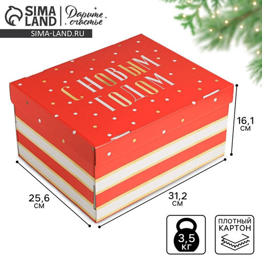 Форма: Прямоугольная. Ширина, см: 25.6. Высота, см: 16.1. Глубина, см: 31.2. Допустимый вес вложения, г: 3000. Тематика: Новогодняя. Рисунок: Да. Крышка: Да. Символ года: Нет. Тематика праздника: Новый год. Колёса/ролики: Нет. Вид: Складные коробки. Размер: Большой (25-45 см). Бесплатная доставка: Да. Наша разработка: Да.