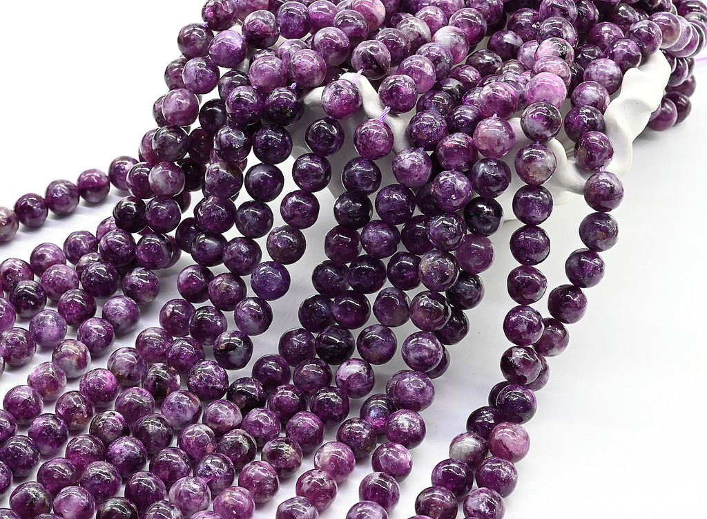 Бусины из натурального камня лепидолит в форме шарика.