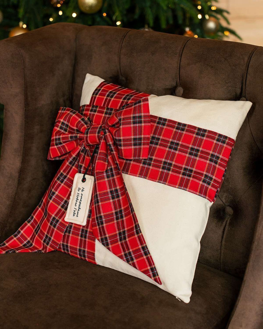 Представляем вашему вниманию дизайнерскую новогоднюю наволочку, декорированную большим бантом и текстильной этикеткой на булавке, которая отстегивается при желании. Интерьерная подушка может использоваться как часть новогоднего декора, обеспечивая стильное и современное оформление вашего жилища. Чехол на подушку легко снимается, а также не боится машинных стирок. Шотландская клетка выглядят оригинально, стильно и при этом отлично подходит для создания праздничной атмосферы - одновременно торжественной и уютной! Наволочка на декоративную подушку с клетчатым узором привлекает внимание и добавляет изысканности вашему интерьеру. Рождественский декор с такими элементами помогает создать атмосферу тепла и радости, делая ваш дом по-настоящему праздничным.­