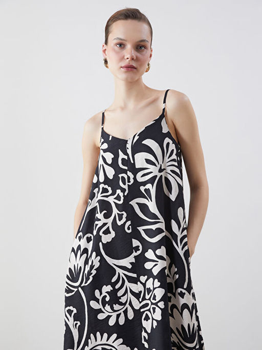V Yaka ?i?ekli Ask?l? A Kesim Elbise