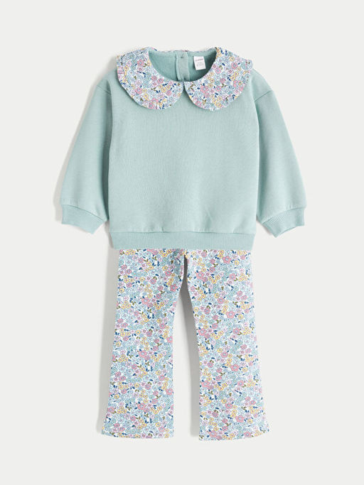 • ?i?ekli K?z ?ocuk Sweatshirt ve Tayt