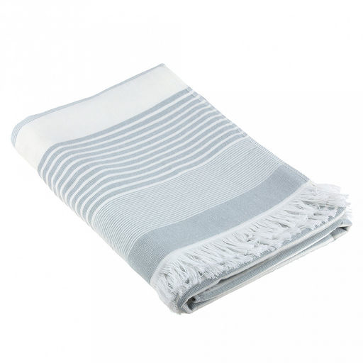 • Полотенце махровое "Полосатый рейс" 70х140см, хлопок 100%, с бахромой, голубой (Китай)