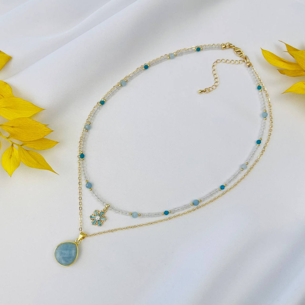 • Колье двойное из Горного Хрусталя,Апатита и Аквамарина 38/42 см +