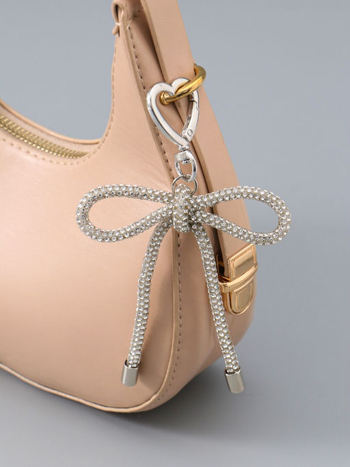 Цена за 2 шт. Брелок на карабине "Бант со стразами" серебро 11х7,5х1,5 см