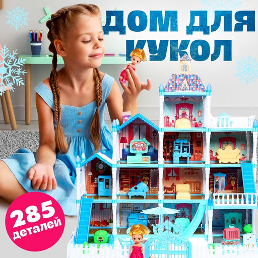 Дом для кукол «Зимний дворец» - это прекрасное место для игр и развития фантазии ребенка. Этот четырехэтажный замок окрашен в приятные белые и голубые тона, воссоздает волшебную атмосферу и предлагает множество возможностей для увлекательных сюжетов.ОсобенностиРазмеры: 66 × 61 × 49,5 смЧетыре этажа с различными комнатами и мебельюЗона отдыха со столом и стульямиСпальня, гостиная, кухня и террасаНаличие светящихся элементов по всей конструкцииТелевизор, лестница и другие аксессуары для максимально реалистичной игрыКуколка с питомцами для увлекательных историйЭтот светящийся кукольный домик станет великолепным дополнением игровой коллекции. Он идеально подходит для игр в одиночку или в компании, развивая социальные навыки и воображение. Упакованный в картонную коробку, кукольный замок может быть подарен ребенку на любой праздник или в качестве неожиданного приятного сюрприза. Для кого: Для девочки. Высота, см: 66. Возраст: От 3 лет. Вид упаковки: Коробка картонная. Складной: Нет. Дополнительные функции: Светящаяся. Вид: Замок. Бесплатная доставка: Да. Размеры товара: 8/39/32.