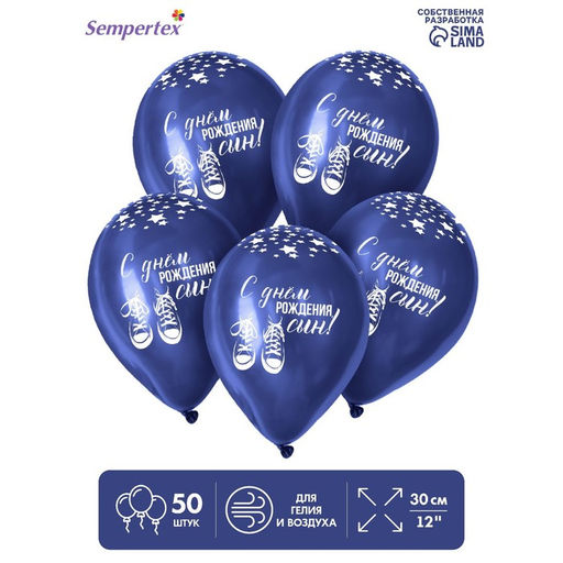 • Воздушный шар латексный 12" «С Днём Рождения, сын!», пастель, цвет синий, темно-синий, 50 шт.
