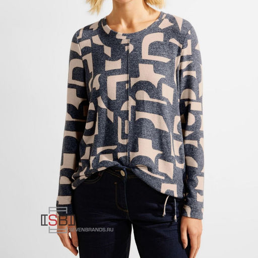 Пуловер с длинными рукавами, круглым вырезом и шнурком на поясе.