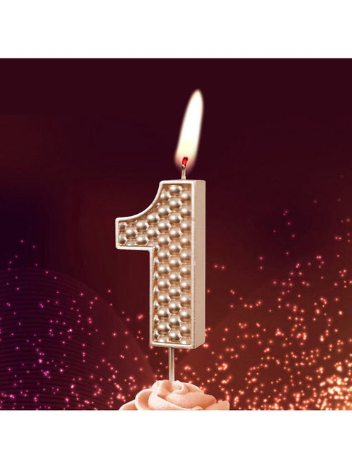• Цена за 2 шт. Свеча в торт на шпажке «Жемчужная», цифра 1, шампань