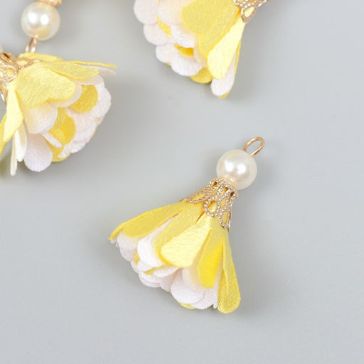 • Декор текстиль Цветок 2 с жемчужиной. Жёлтый и белый, набор 6 шт., 3 см