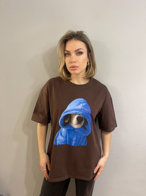 K12302 Футболка OVER SIZE (плотный хлопок) КОРИЧНЕВЫЙ