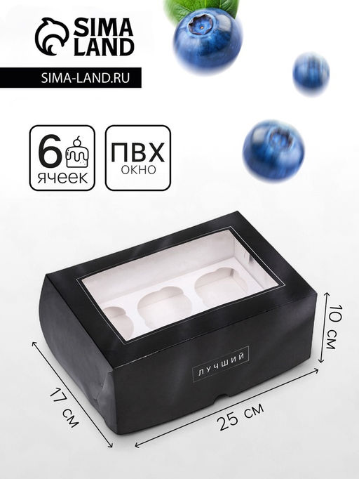 • Упаковка на 6 капкейков с окном, «Лучшему мужчине», 25×17×10 см