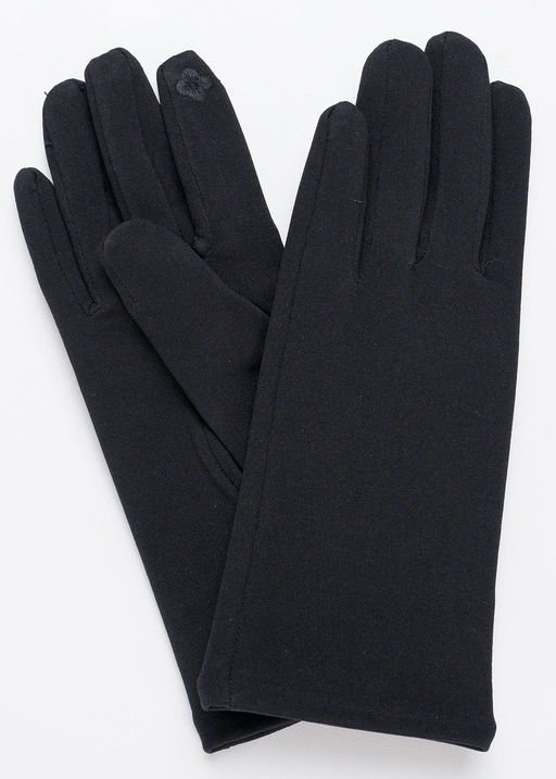Женские перчатки из эластичного полотна внутри с небольшим начесом, на большом и указательном пальцах вышивка сенсорными нитками, размер 18. 95% пэ, 5% эластан