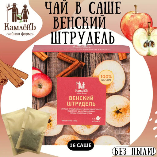 • Камлёвъ Черный чай с кусочками яблока и корицы "Венский Штрудель", 48 г (16 саше)