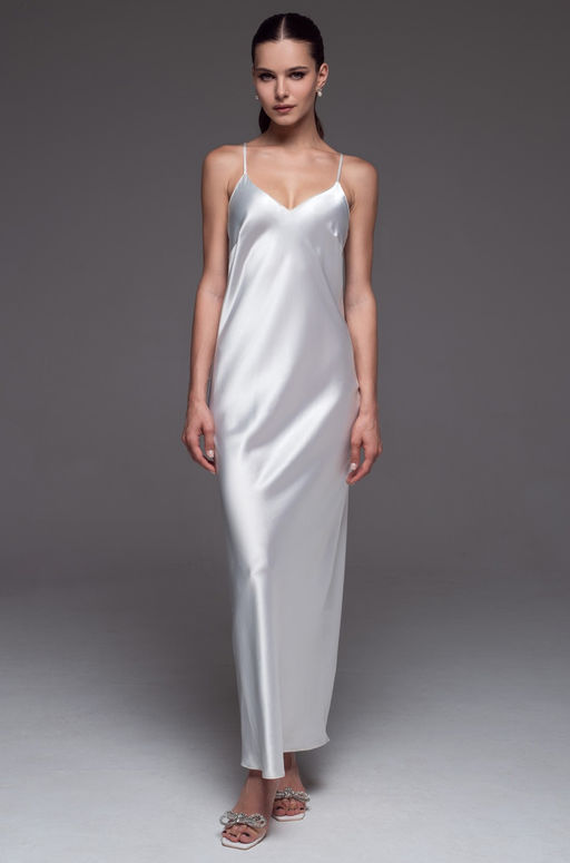 Длинная сорочка Mia-Amore на тонких регулируемых бретелях. Сорочка выполнена из смесового шёлка. Оригинальная спинка сорочки декорирована сеткой с жемчужинами. Состав:70% натуральный шелк, 25% полиэстер, 5% эластан