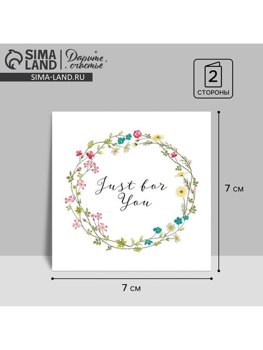 Цена за 20 шт. Открытка‒мини Just for you, цветочный веночек, 7×7 см
