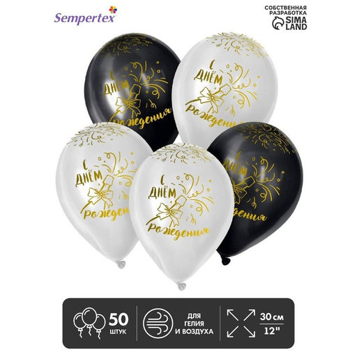 • Воздушные шары латексные 12" «С Днём рождения», 50 шт.